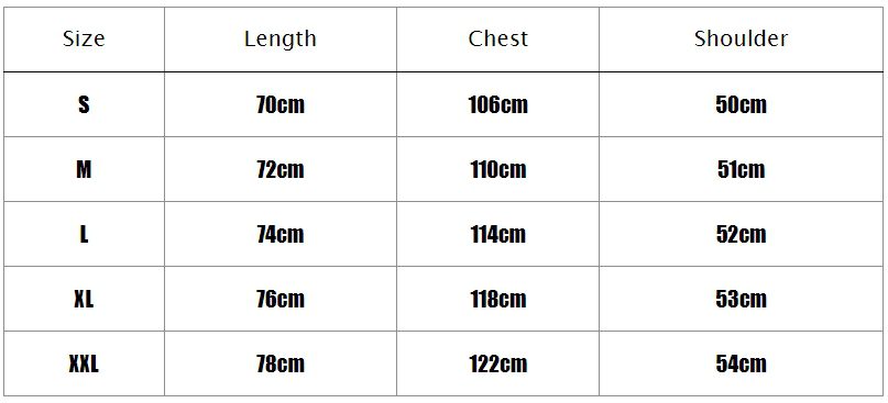 S, M, L, XL, XXL |